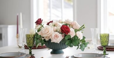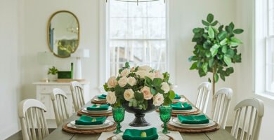 Saint Patrick’s Day Table Decor Using Roses and Green Napkins