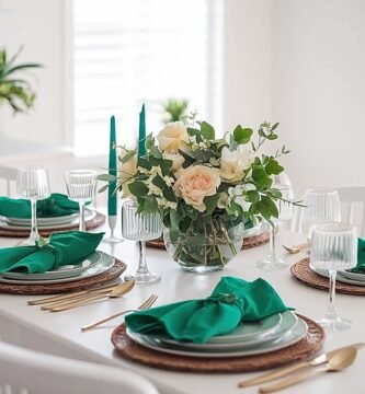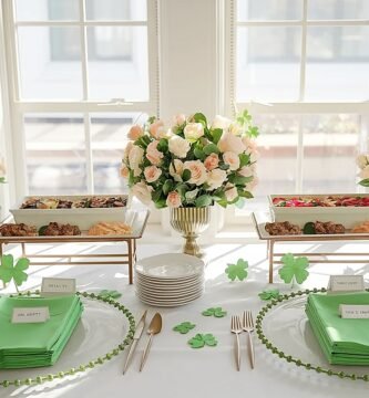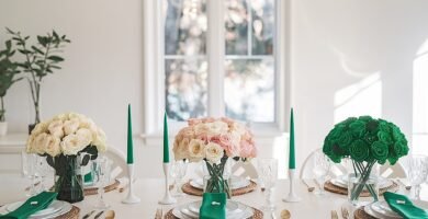 Saint Patrick’s Day Table Decor Using Roses and Green Napkins