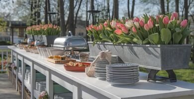 Spring Tulips Patio Centerpieces for Buffets That Keep Food First