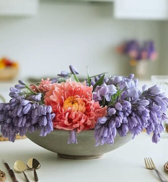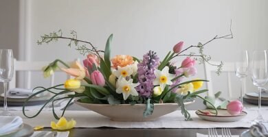 Spring Flower Centerpiece Low Container Guide for Serving Surfaces