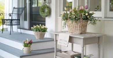 Spring Tulips for Porch Styling: Bench, Step, Swing, and Welcome Table