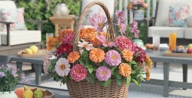 Decorate a Backyard Party Shared Napkin Basket with Summer Flowers