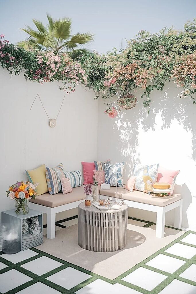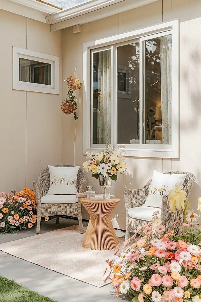 Ideas for Summer Flowers on a Patio Bench Corner for a Kid-Friendly Birthday Party