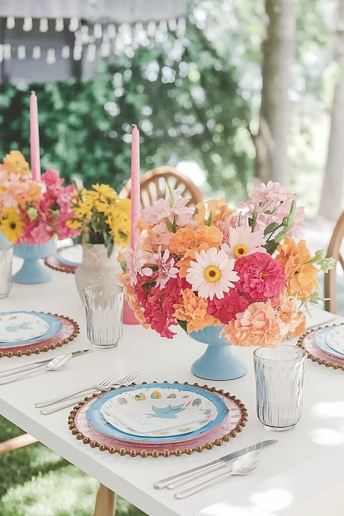 How to Style Summer Flowers on a Kid-Friendly Patio Birthday Table