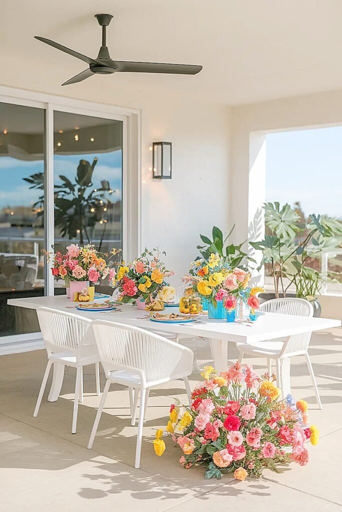 Ways to Style a Kid-Friendly Summer Birthday Patio Party with Bright Playful Summer Flowers