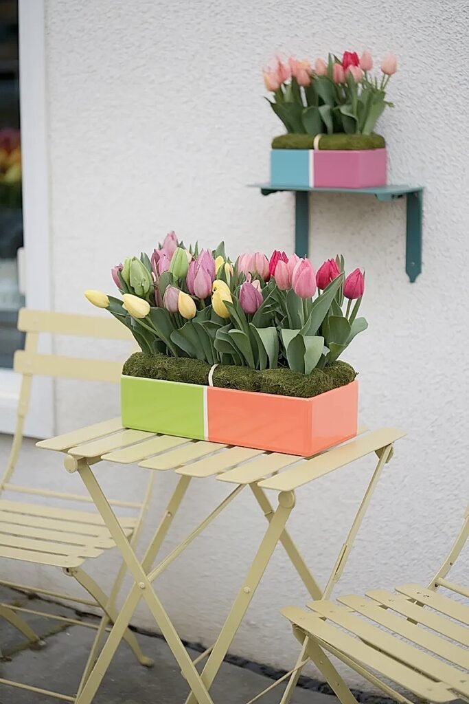 How to Color Band Spring Tulips in Patio Table Planters Without Looking Striped