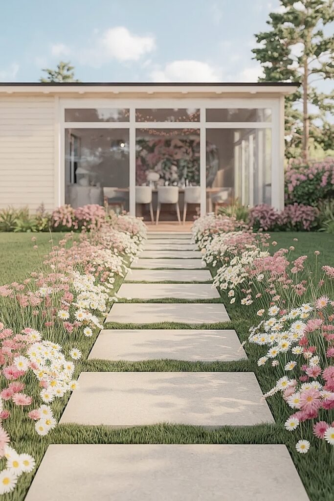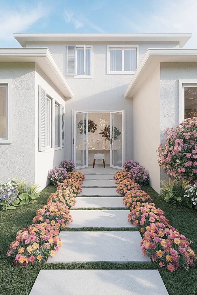 More ahead on the specific best flower varieties for walk-up path edges, which have their own resilience and stability requirements that differ from the entry and terminus positions.