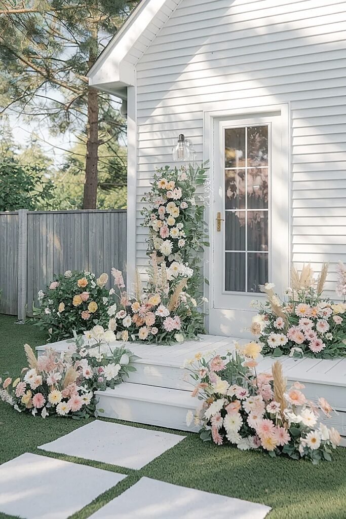 - The walk-up area is the highest-impact flower placement at any outdoor birthday: it sets the visual tone before guests reach any other surface