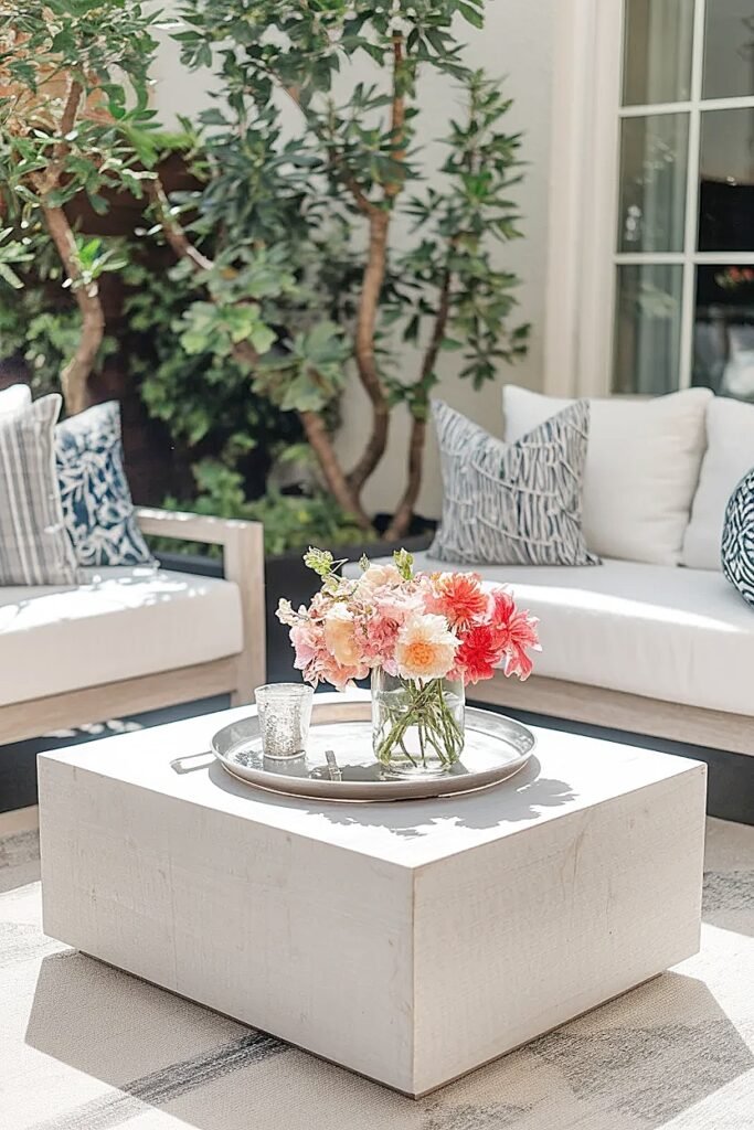 Ideas for Turning Grocery Store Summer Flowers into Expensive-Looking Decor on Coffee Tables (Drink Space Open)