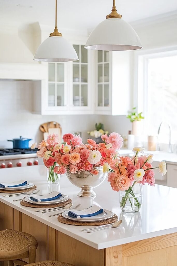 Ideas for Turning Grocery Store Summer Flowers into Expensive-Looking Decor on Kitchen Islands (Prep-Lane Style)