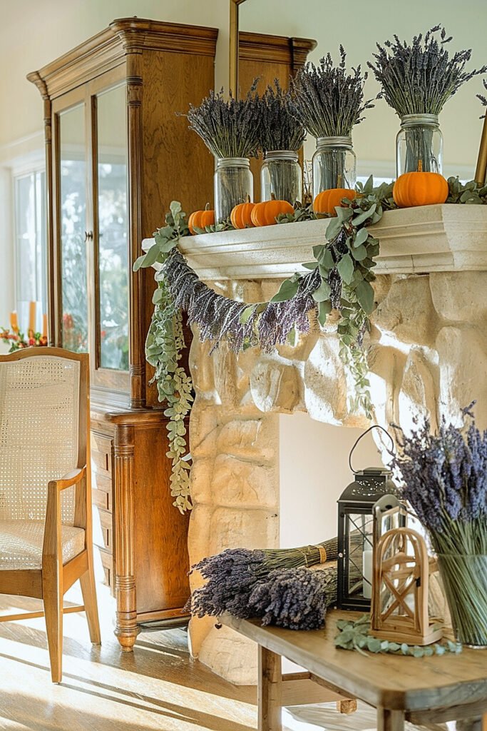 How to Style Lavender Thanksgiving Garlands on Farmhouse Mantels