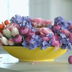 Practical application: when combining spring flowers in different color families, position muscari between them physically in the arrangement. If you’re mixing pink ranunculus with yellow tulips, don’t let them touch directly, nestle muscari stems between creating visual buffer. The grape hyacinth acts like grout between tiles, defining each color zone while preventing jarring direct contact.