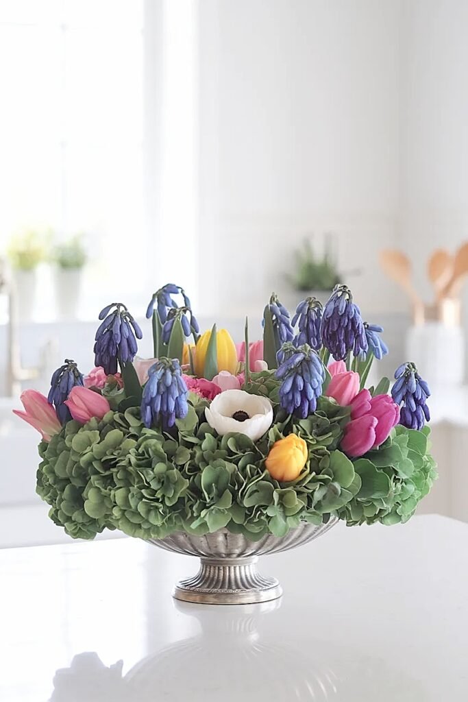 Ideas for Muscari-Heavy Spring Flowers Centerpieces on Kitchen Islands That Stay Low