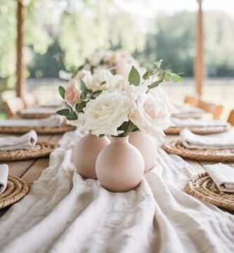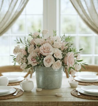Rustic Table Runner Ideas with Fresh-Cut Roses