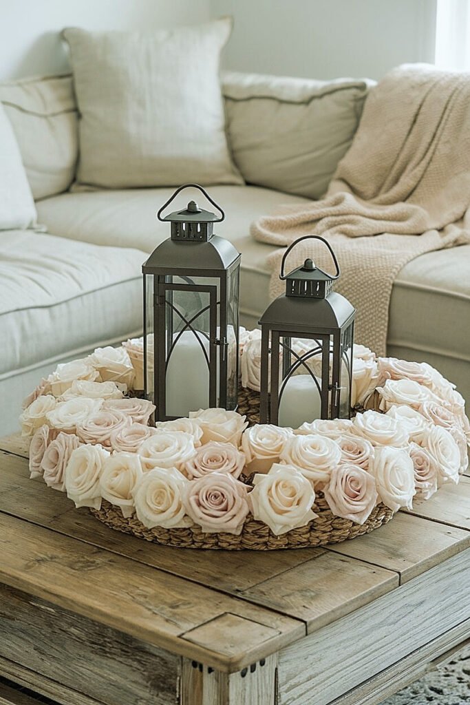 Ideas for Decorating a Christmas Coffee Table with Roses and Lanterns