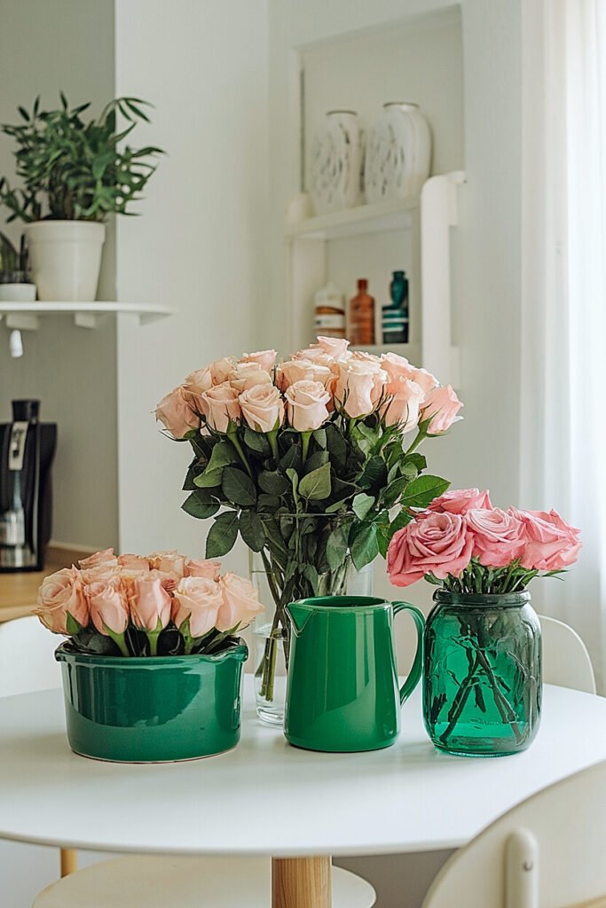 Container selection establishes St. Patrick’s atmosphere before adding a single flower. Green vessels communicate Irish intent immediately while providing practical housing for roses. The right containers suit apartment scale while surviving the bumps, moves, and storage demands small-space living requires.