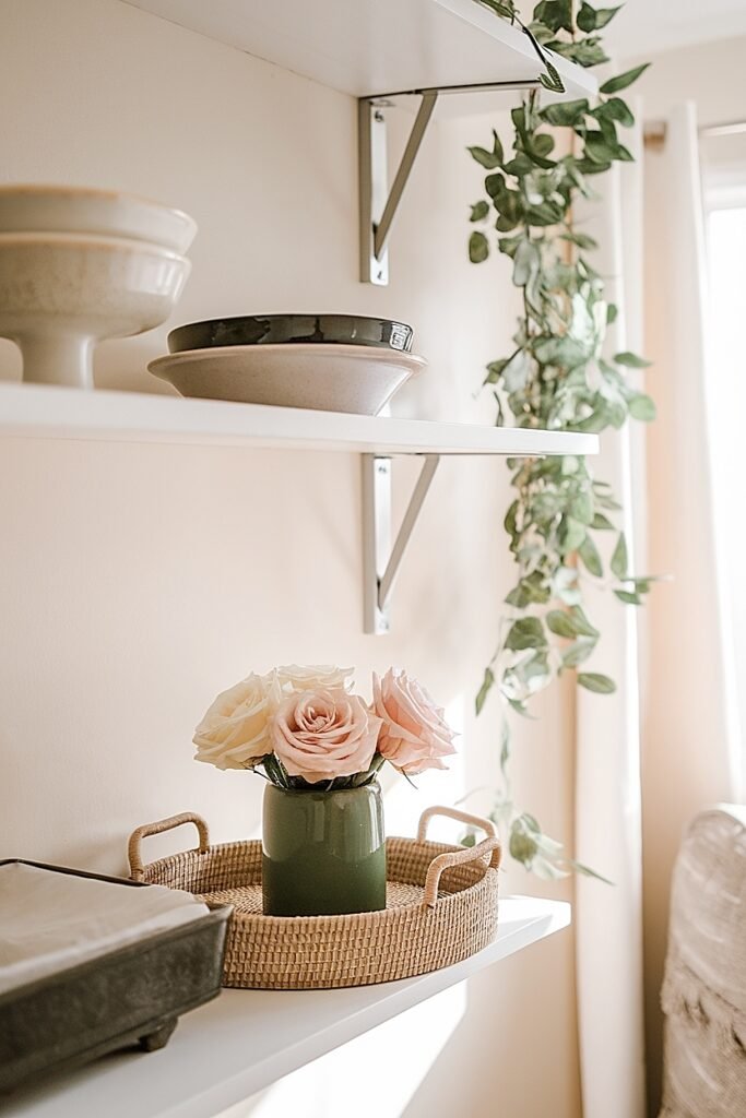 Ideas for Saint Patrick’s Day Apartment Shelf Styling with Roses (Floating Shelves)