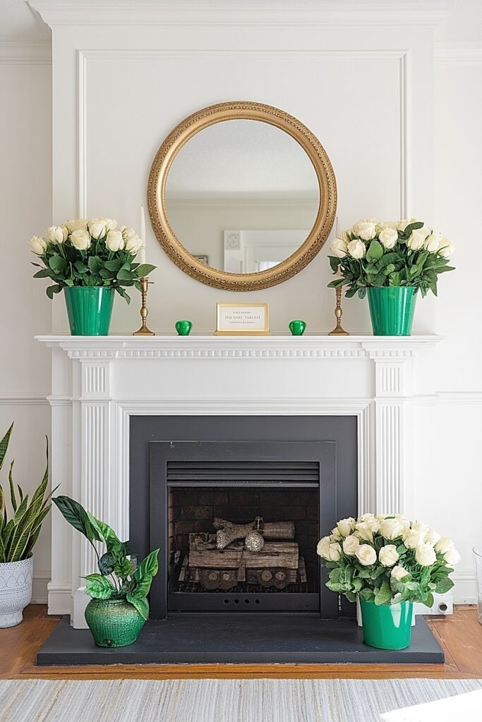 I treat my mantel as the visual anchor for the entire room’s Saint Patrick’s Day decor. Everything else in the space should complement what happens on this prominent shelf.