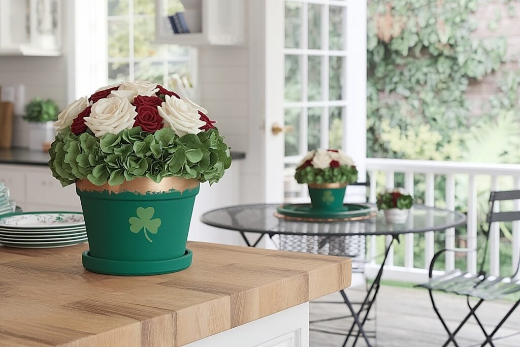 Ways to Style Saint Patrick’s Day Roses on Kitchen Counters in Painted Pots