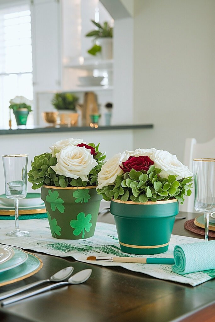 - Painted terracotta pots offer an affordable, customizable vessel for Saint Patrick’s Day rose displays that look far more sophisticated than store-bought alternatives