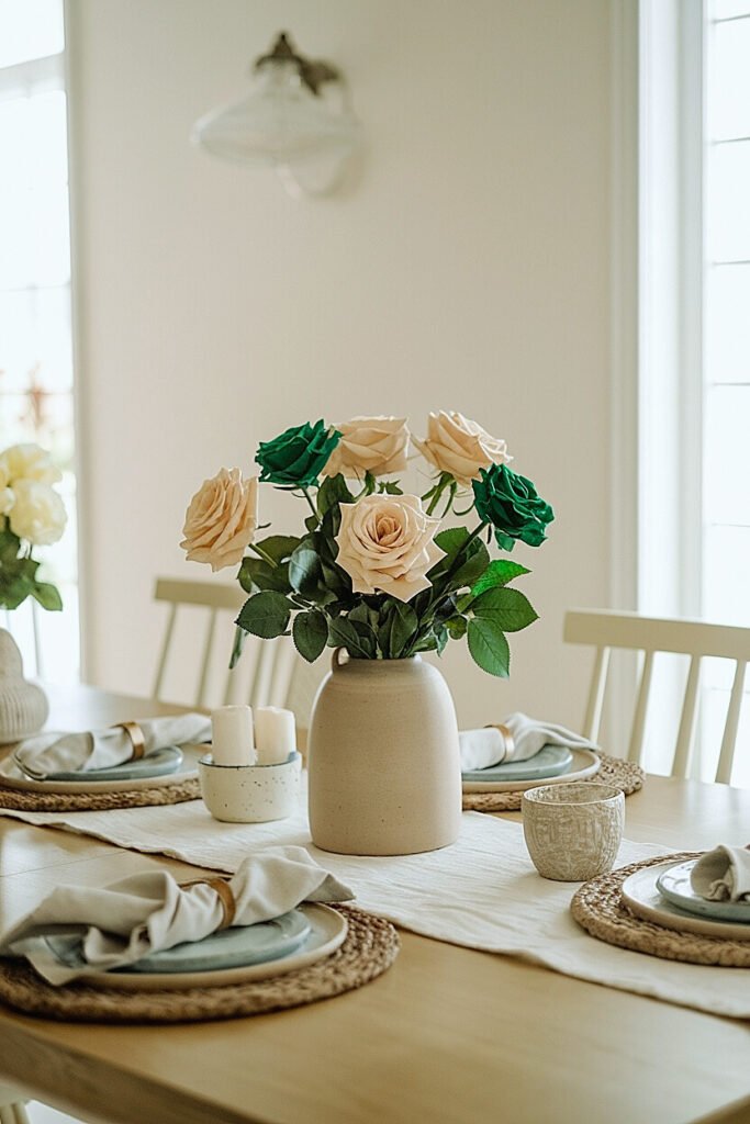 Ideas for Saint Patrick’s Day Dining Table Roses Using Only One Green Element