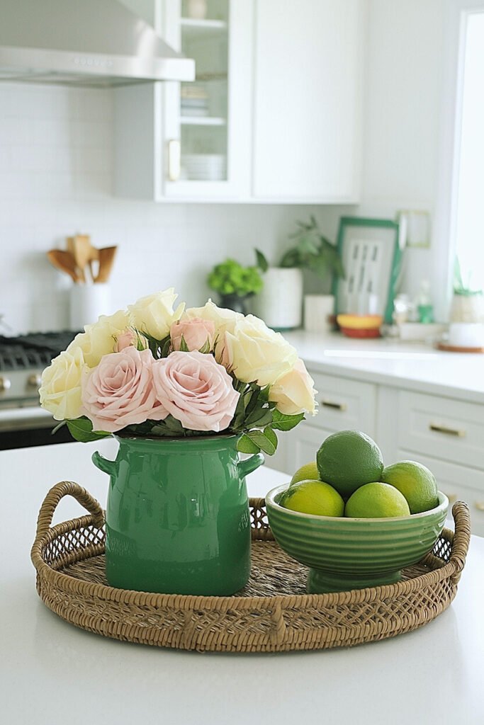 Ways to Do Saint Patrick’s Day Counter Decor with Roses + Green Citrus Bowl