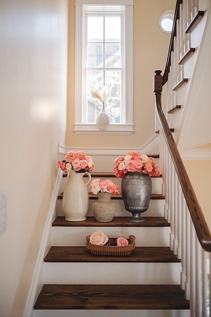 These approaches emerged from transforming my own neglected landing into genuine decorating territory. The discovery that guests notice landing displays more than elaborate living room arrangements. The realization that transitional spaces create stronger impressions than expected destination rooms. Your stair landing’s St. Patrick’s roses will surprise visitors and delight your family with every ascent and descent through your home.