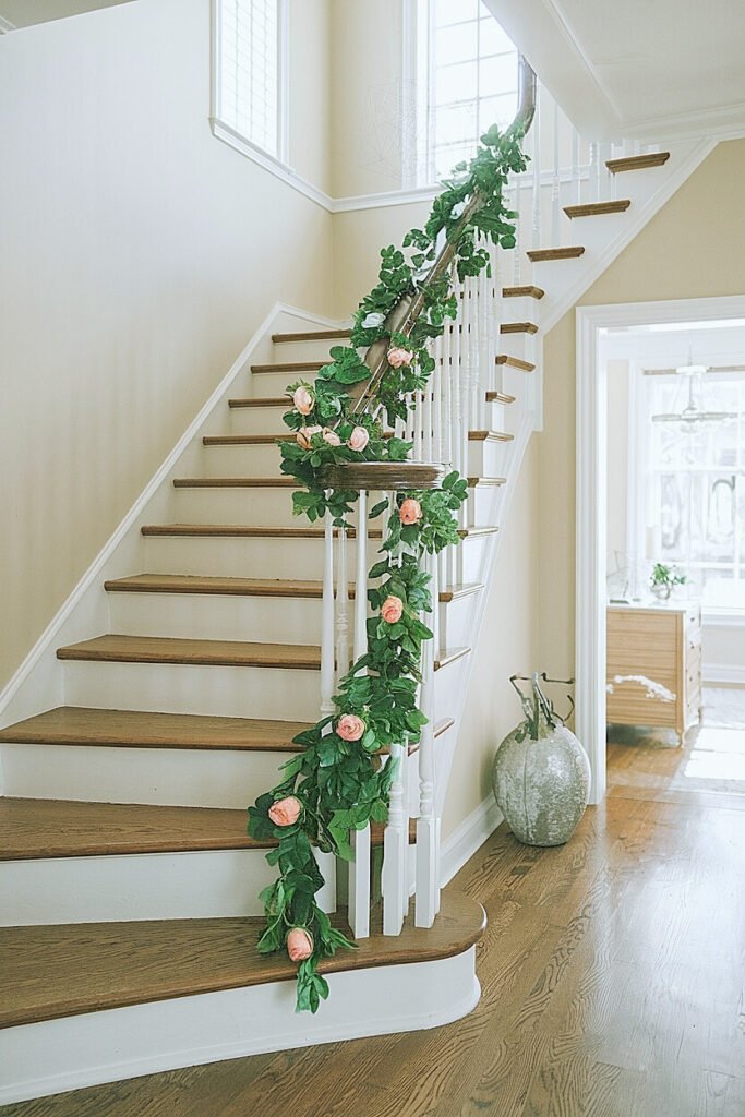 Ways to Create Saint Patrick’s Day Rose Garlands Along the Stair Rail