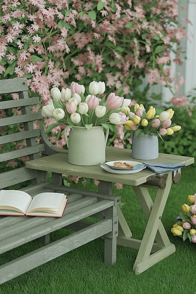 Ways to Choose Spring Tulips Colors That Pop Gently on Outdoor Bench Tables