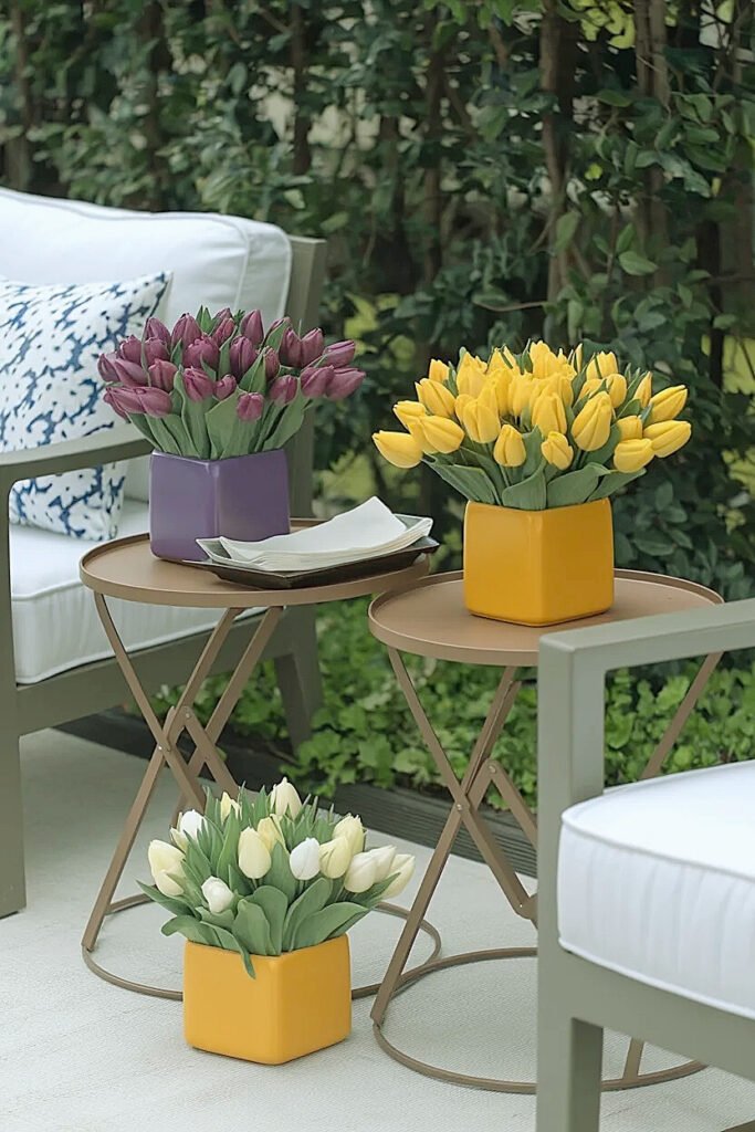 Ideas for Spring Tulips Color Blocking on Outdoor Side Tables