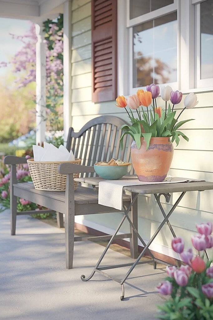 Ways to Choose Spring Tulips Colors for a Porch Bench Welcome Table