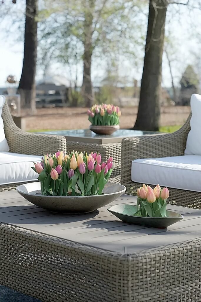 What Are the Best Round Low Bowls for Spring Tulips Patio Centerpieces on Bistro Tables