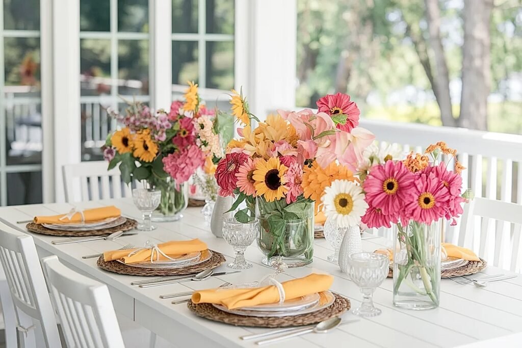 For more on styling summer birthday flowers throughout the entry and inside the home, check out summer flower birthday entry decor using crates and small arrangements. Share it with anyone planning an outdoor summer birthday. More ahead on specific layouts and surfaces throughout the rest of this article.