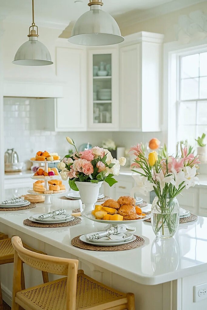 How to Use Summer Flowers on a Kitchen Island for a Summer Birthday Brunch Party