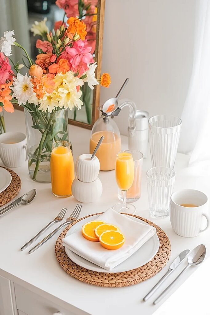 Ways to Arrange Summer Flowers on a Mimosa and Coffee Station for a Birthday Brunch