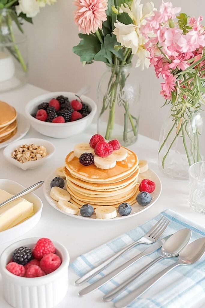 How to Style Summer Flowers on a Pancake Bar for a Summer Birthday Brunch Party