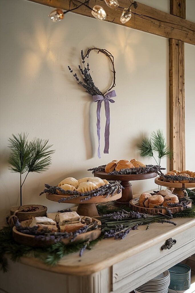 How to Style a Rustic Buffet Table with Lavender and Christmas Accents