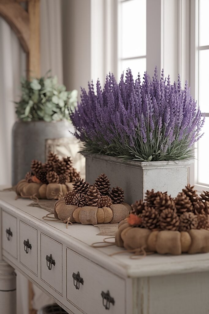 Ways to Replace Thanksgiving Pumpkins with Christmas Pinecones in Lavender Decor