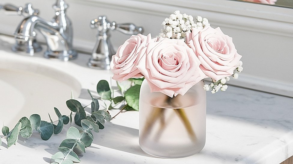 What are some ways to use roses in bathroom decor?