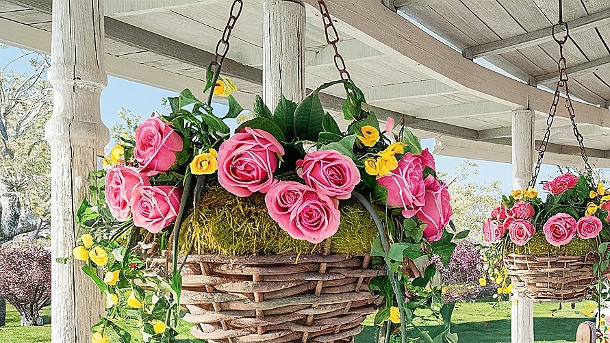 How to style roses in hanging planters for a porch