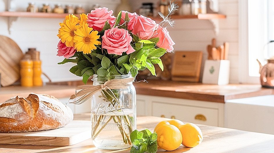 How to incorporate roses into a kitchen display