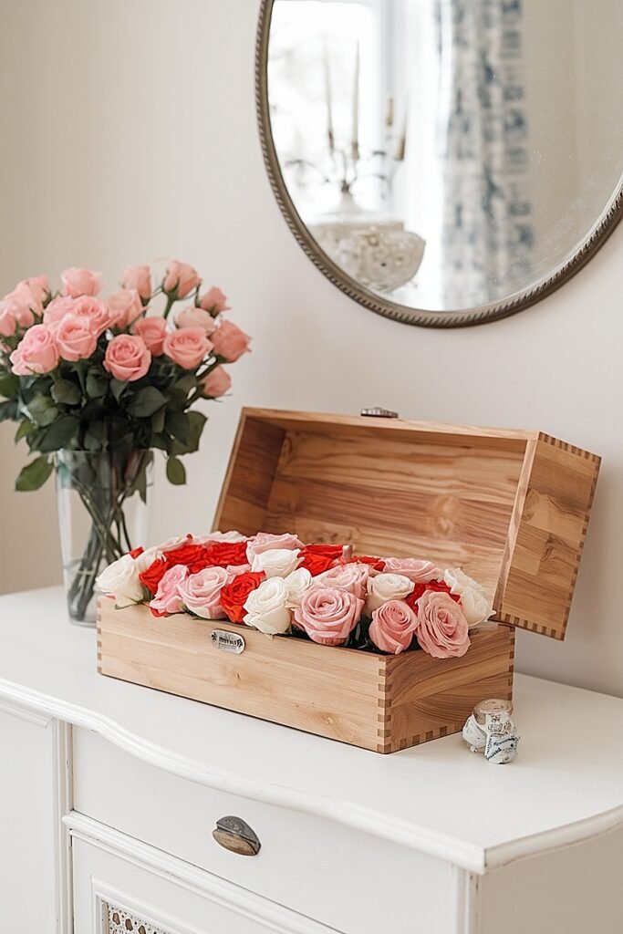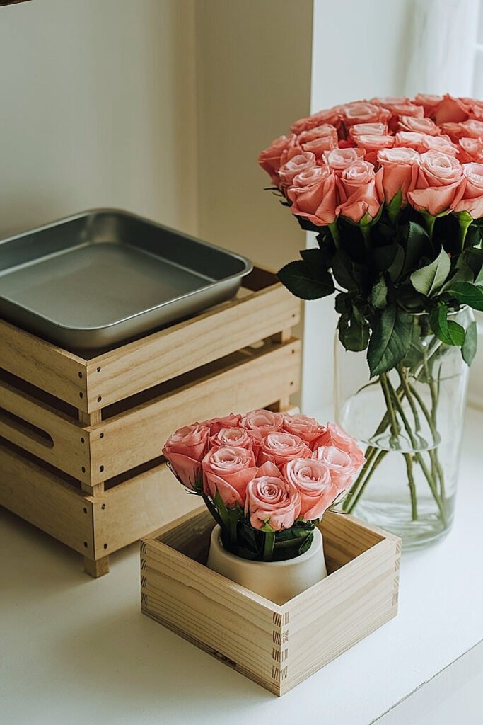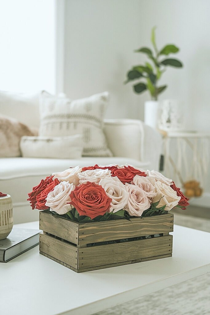 Ways to Style Valentine Roses in a Wooden Crate for a Coffee Table Tray
