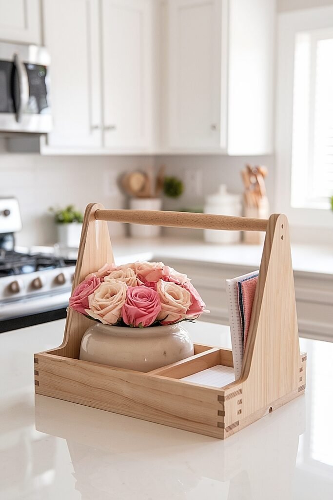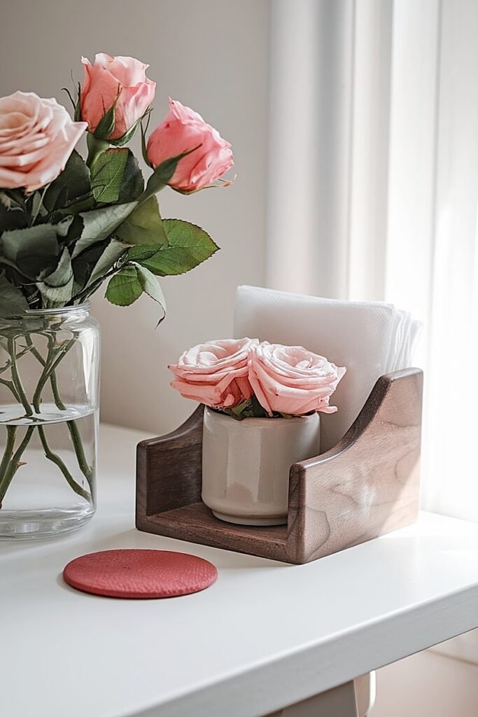 Ways to Use Valentine Roses in a Wooden Napkin Caddy for Dining Nooks