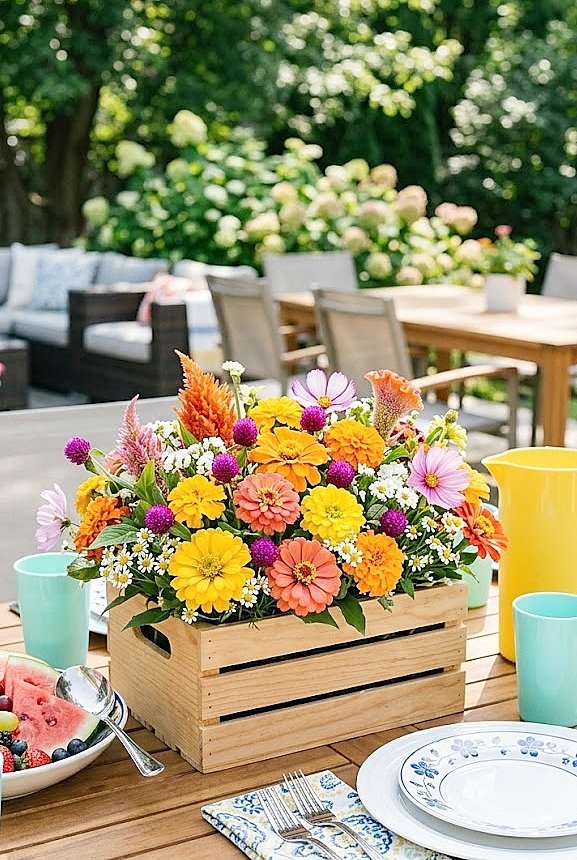 Ways to Use Budget-Friendly Summer Flowers in a Wooden Crate for a Backyard Patio Party